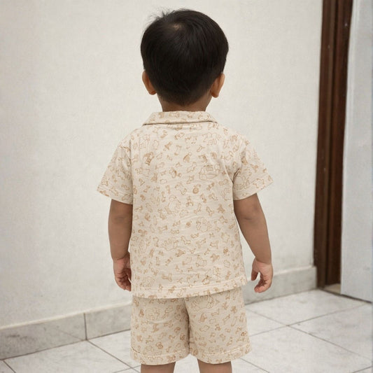 INFANT HOUSE Baby Boys Fawn Abstract Print Cotton Shirt & Shorts Set (3M–3Y)