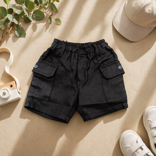 Smile Baby Boys Black Cargo Shorts – Elastic Waist Casual Summer Shorts (12M-5Y)