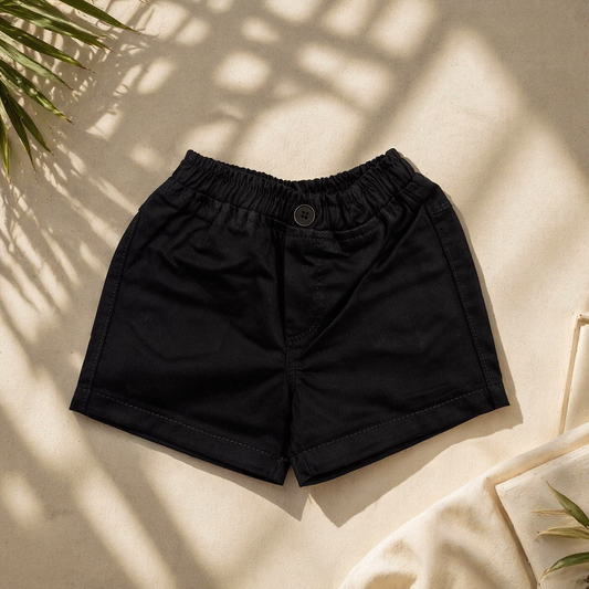 Smile Baby Infant Boys Black Cotton Shorts – Soft Elastic Waist Summer Shorts (3M-18M)
