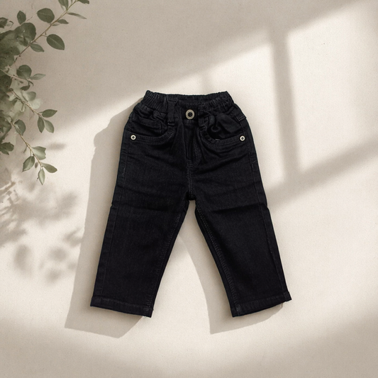 Smile Baby Infant Boys Black Denim Jeans – Soft Elastic Waist Baby Pants (3M-18M)