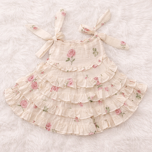 ORRIGANY Cream Gold Polka Party Dress for Girls | Sleeveless Bow Dress (9M–6Y)