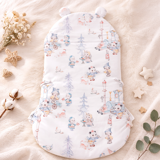 SMILE BABY New Born Carry Nest – BLUE | Soft Quilted Baby Sleeping Bag with Hood