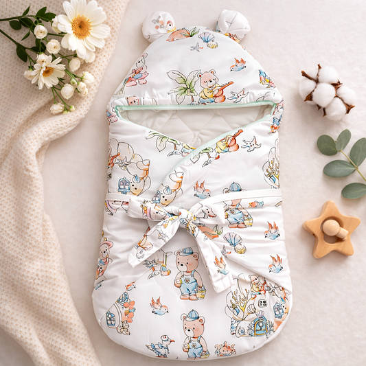 SMILE BABY New Born Carry Nest – C.GREEN | Soft & Cozy Baby Sleeping Bag with Hood