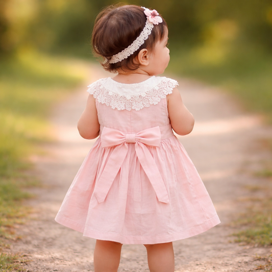 NUM NUM Baby Girls Cotton Lace Party Frock Dress (12M–4Y) | Soft Summer Dress | Pink & Brown
