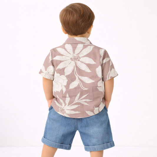 DONOO Baby Boys Floral Print Shirt & Denim Shorts Set – Pink | 6 Months to 24 Months