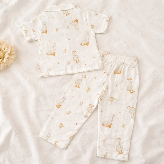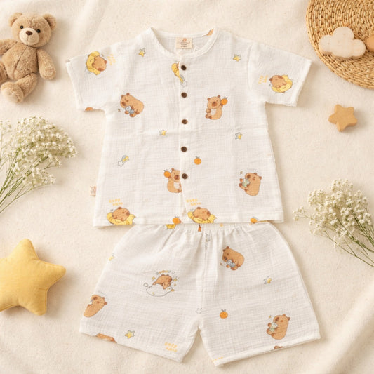 NUM NUM Baby Boys Cotton Night Suit Set – Cute Cartoon Print Shirt & Pant Set (9M–3Y) Yellow