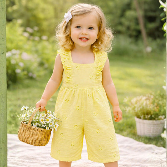 NUM NUM Baby Girls Cotton Jumpsuit Romper with Ruffle Sleeves (0M–6Y) – Soft Summer Wear in Yellow & Beige