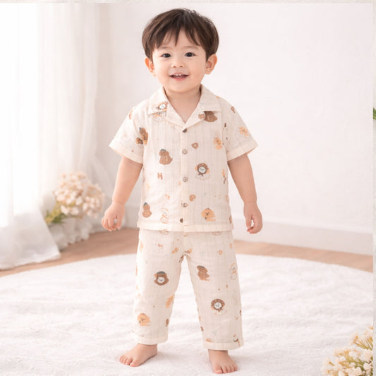 NUM NUM Baby Boys Cotton Night Suit Set – Cute Animal Print Shirt & Pant Set (9M–3Y) Blue