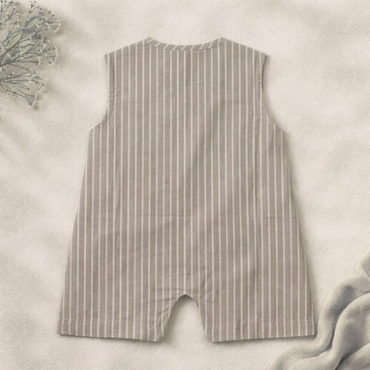 NUM NUM Newborn Baby Cotton Sleeveless Striped Romper (NB–18M) | Soft Breathable Onesie | Beige