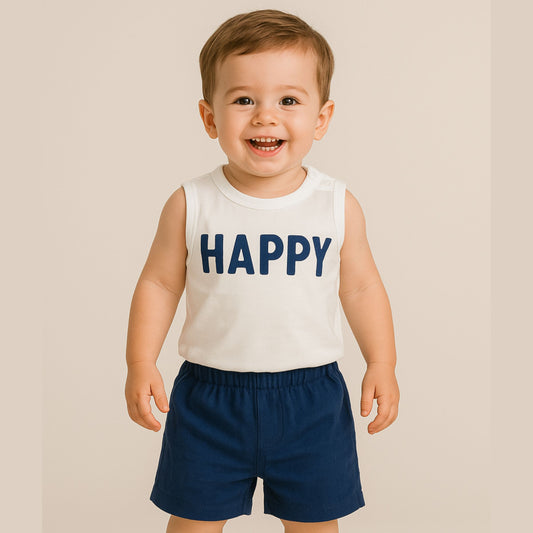 SMILE BABY “Happy Little Boy” Summer Outfit Set for Boys – Cotton Shorts & T-Shirt With Shirt (Newborn to 9 Months)