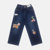 Add fun and attitude to your girl’s outfit with these LOVEKINS dark blue patchwork jeans. Designed with playful embroidered and applique patches, this pair combines trendy street style with lasting comfort. The soft stretch denim and half-elastic waistband make it perfect for school, playdates, or weekend outings. A must-have for kids who love a cool, casual look!