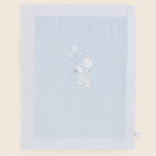 SUNNOZY Ultra Soft Baby Blanket with Teddy Embroidery and Ribbon – Blue Minky Dotted Blanket for Newborns (Size: 75x100 cm)