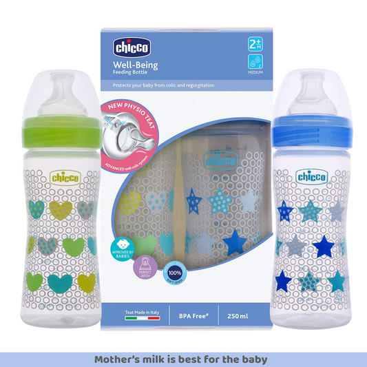 Chicco Well-Being Bipack Feeding Bottle, Advanced Anti-Colic System, BPA Free, Hygienic Silicone Teat (Blue & Green)