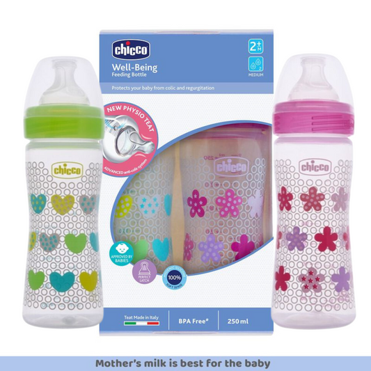 Chicco Well-Being Bipack Feeding Bottle, Advanced Anti-Colic System, BPA Free, Hygienic Silicone Teat (Pink & Green)