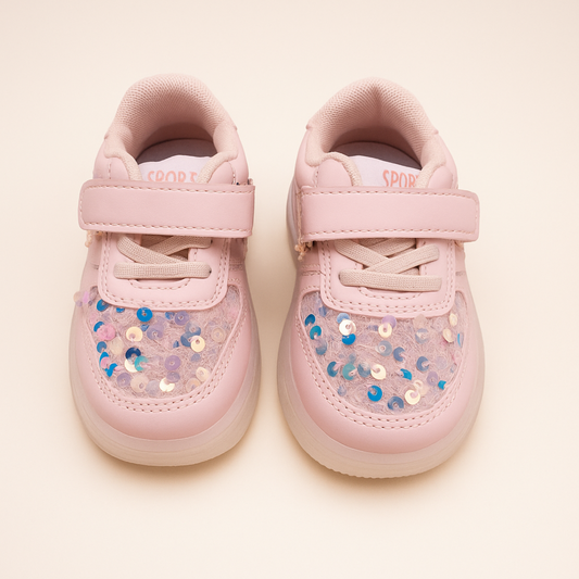 Smile Baby Kids Glitter Sneakers with Velcro Strap – Pink & Silver