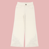 Add a touch of elegance and comfort to your little girl’s wardrobe with the LOVEKINS Girls’ Cream Wide-Leg Pants. Crafted from a soft stretch fabric, these pants feature delicate floral embroidery near the hem, offering a classy and stylish look perfect for any occasion.