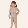 Smile Baby Girls Muslin Cotton Night Suit – Beige Cartoon Print Pajama Set (Age 3–8 Years)
