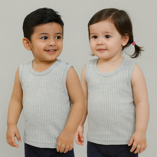 SMILE BABY Sleeveless Thermal T-Shirt for Babies & Kids (0–6 Years) – Soft Ribbed Cotton Winter Innerwear – Grey