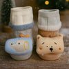 SMILE BABY Newborn Baby Booties | Soft Cotton Booties with Cute Animal Designs | Warm & Comfortable Infant Footwear (0–12 Months) | Pack of 2 – Beige & Blue