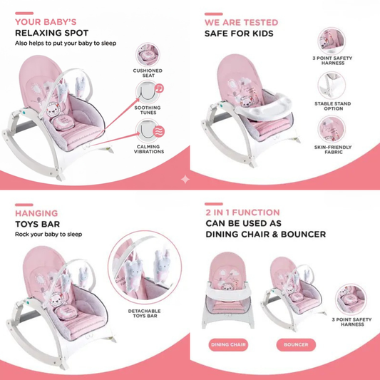 Smile Baby Rocker | Soft Cushioned Seat, Safety Belt, Feeding Tray, Multi-Position Recline, Newborn to Toddler , 2 in 1 Rocker (Up to 20 kg)