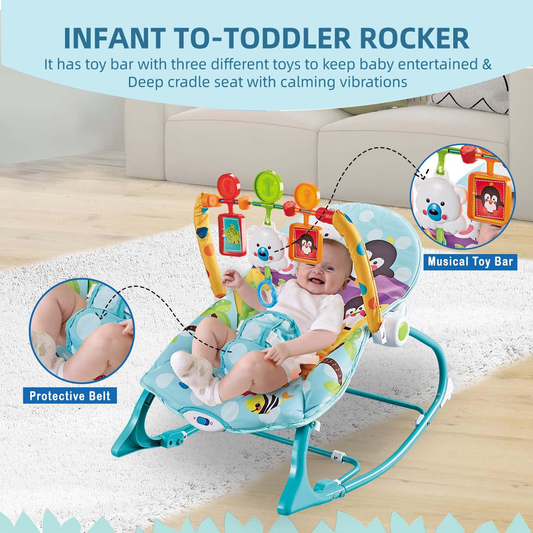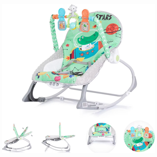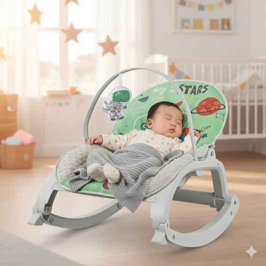 Smile Baby 3-in-1 Space-Themed Infant-to-Toddler Rocker with Soft Cushion, Calming Vibrations & Detachable Toy Bar – Model 27249 (Green)