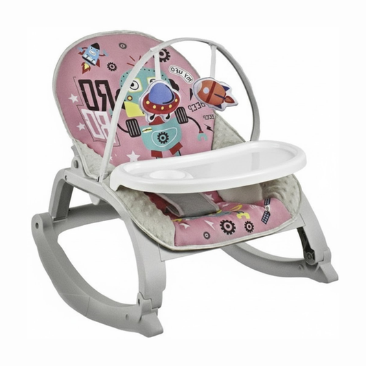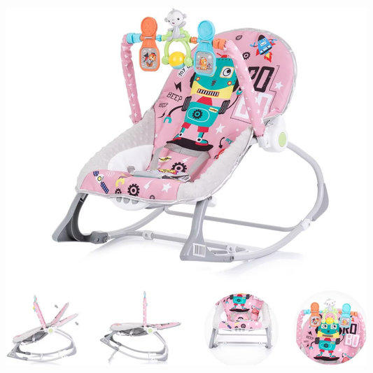 Smile Baby Premium Pink Robot Baby Rocker with Soft Cushion Seat, Removable Toy Bar & Safe Gentle Rocking Motion – Model 27245