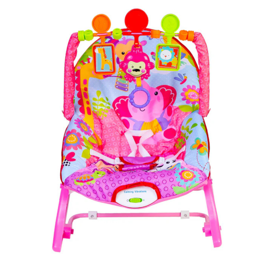 Smile Baby 3-in-1 Musical Infant-to-Toddler Rocker with Calming Vibrations, Adjustable Backrest & Detachable Toy Bar – Pink & Green Baby Bouncer Chair