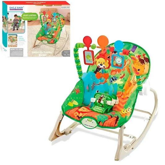 Smile Baby Infant-to-Toddler Rocker | Calming Vibrations, Adjustable Recline, Jungle-Themed Soft Seat & Removable Toy Bar – Green