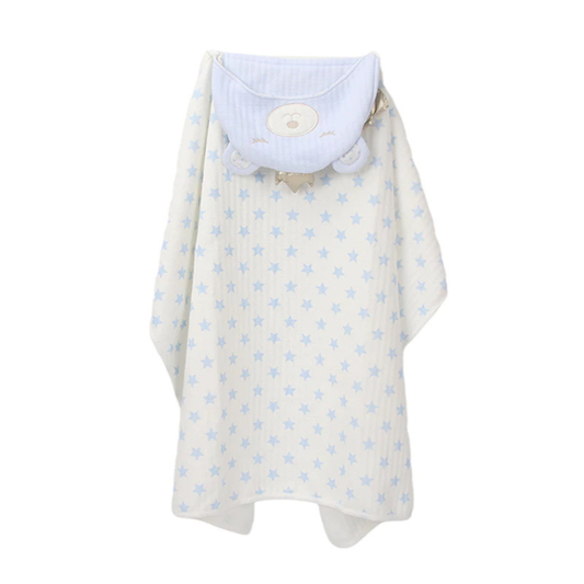 Sunnozy Ultra-Soft Baby Double Layer Bean Blanket | Star Print Hooded Bear Design | Cozy Newborn Blanket | 75×100 cm