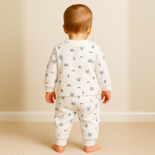 Ollypop Quilted Winter Wear Set for Baby Boys | Warm Cotton Outfit with Cute Bear & Camping Print | Ages 3M – 24M