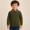 GUSTO Boys Olive Full-Sleeve T-Shirt with Plaid Collar | Premium Winter Layered Top for Kids Age 2–12 Years