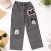 LOVEKINS Kids Grey Printed Denim Jeans – Trendy Cartoon Patch Straight Fit Jeans (8 to 14+ Years)