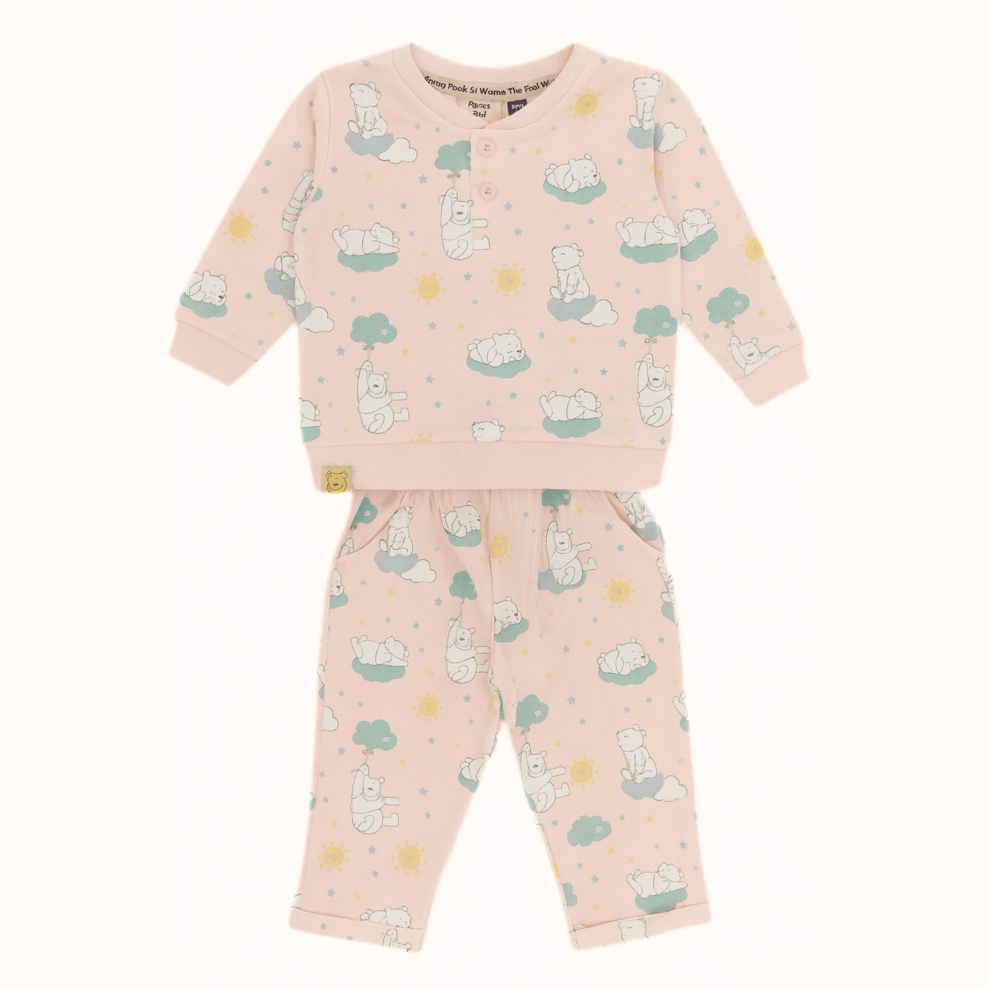 OLLYPOP Winnie the Pooh Full Sleeve Night Suit for Baby Girls (Pink & Sea Blue, Newborn–24 Months)
